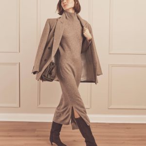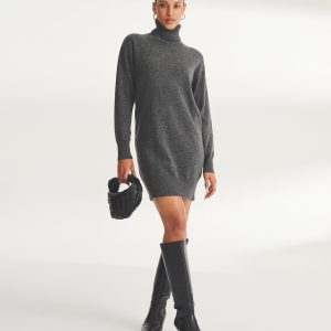 Sofisticación y comodidad. Este vestido de cuello alto, 100 % cachemira, con aberturas, tiene un cuello alto y un largo midi que estiliza la figura. Llévalo con zapatillas para un look relajado que te acompa?ará sin esfuerzo del sofá a la calle.