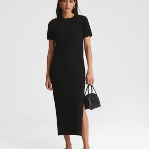 (Casi) desnudo. El vestido midi Baby Rib es una prenda básica, sencilla y sexy, con un corte clásico y una sensación de estar prácticamente desnudo. Presenta cuello redondo, sisas recortadas y aberturas laterales. Confeccionado en modal: una fibra ligera y suave derivada de pulpa de madera de origen sostenible.