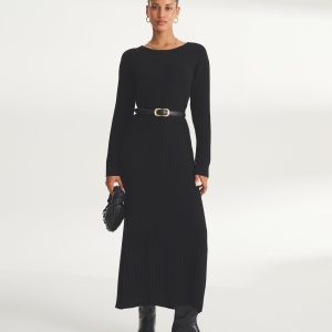 Listo para todo. El vestido Signature Cashmere de canalé ancho es un tejido versátil con un corte clásico y relajado. Presenta cuello redondo, hombros caídos, ribete integral y largo hasta el tobillo. Confeccionado en Signature Cashmere: nuestro clásico 100 % cachemir de 12gg.
