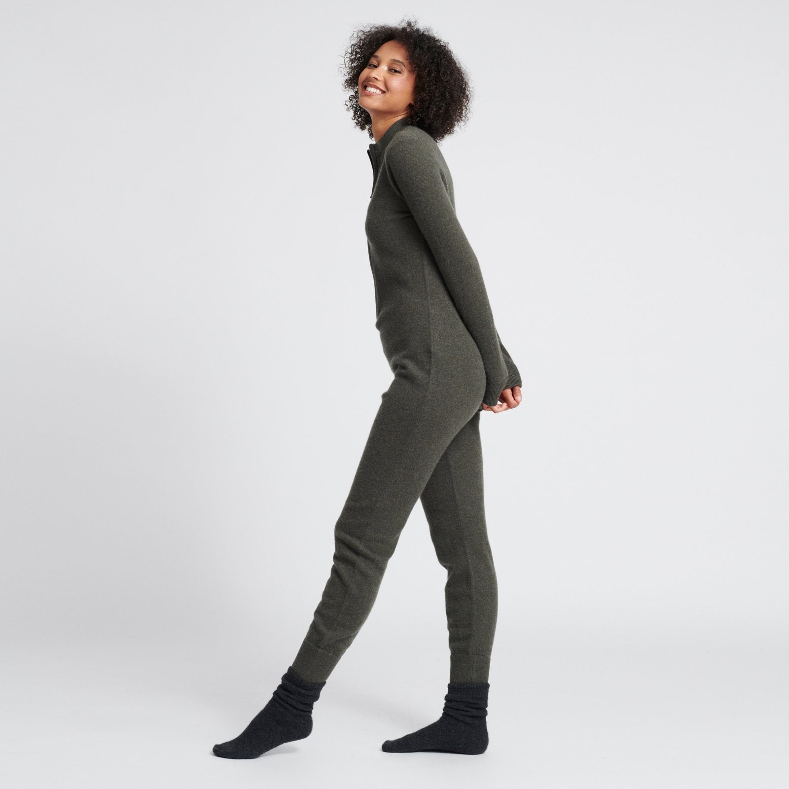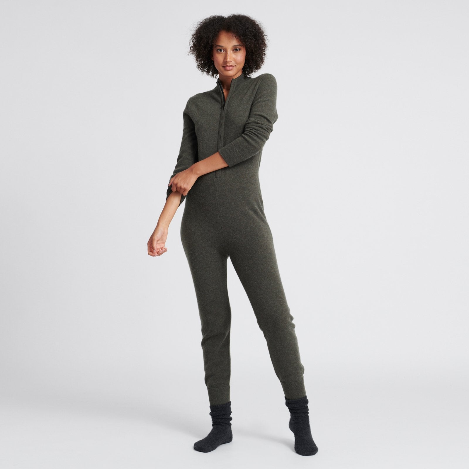 El mejor traje que existe. Hecho 100 % de cachemira, este mono de cachemira es una prenda favorita para estar en casa en climas fríos. Tiene cremallera frontal para ponérselo y quitárselo fácilmente (?un gui?o!), un corte holgado y ribetes acanalados. Acurrúcate con esta prenda imprescindible en tus próximos viajes y escapadas de esquí.