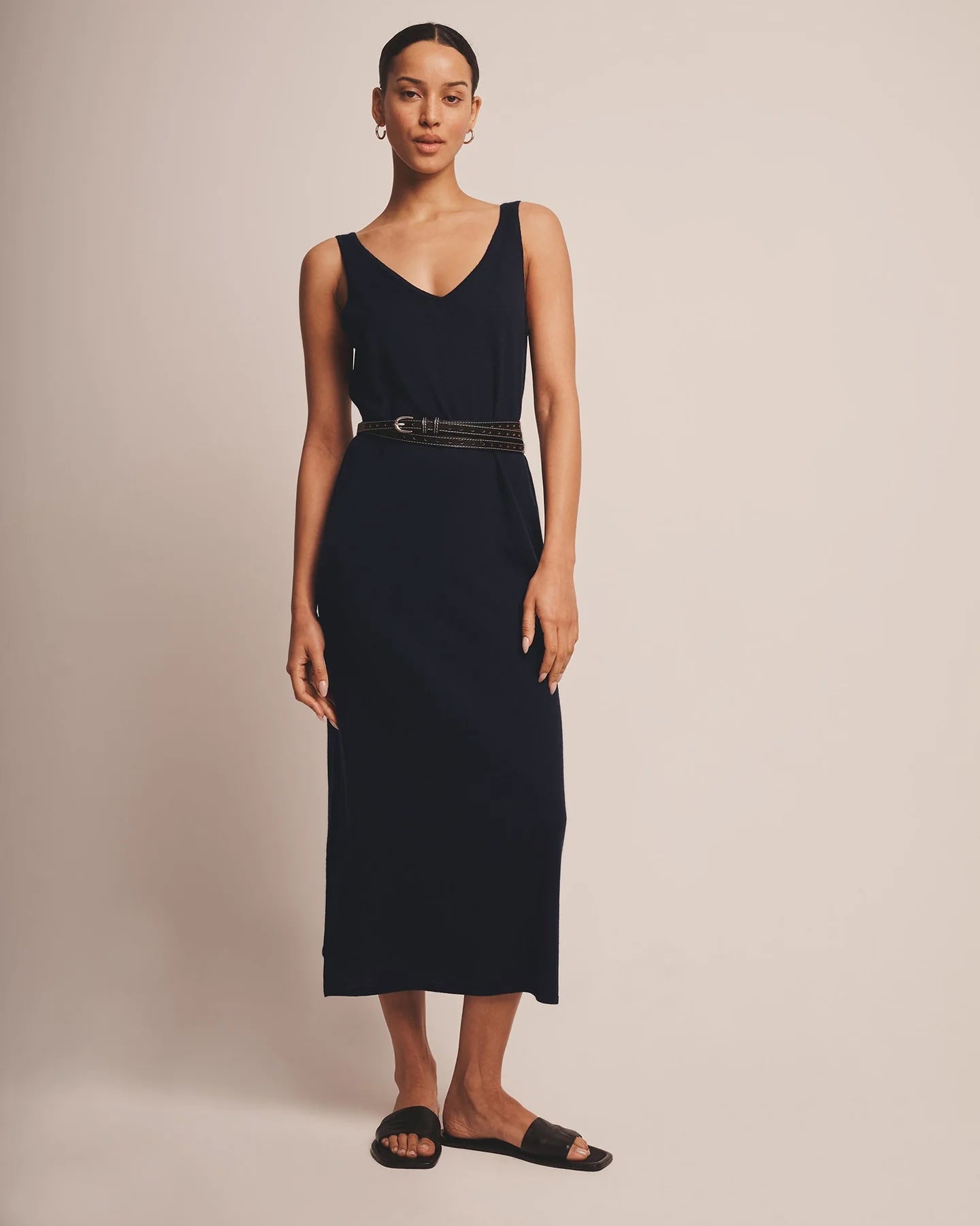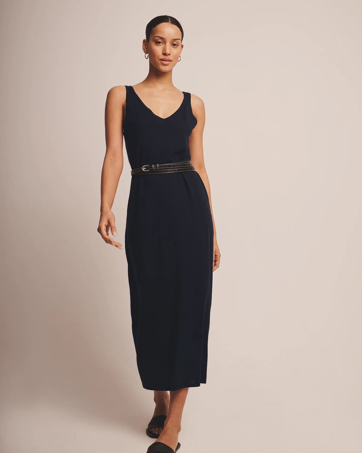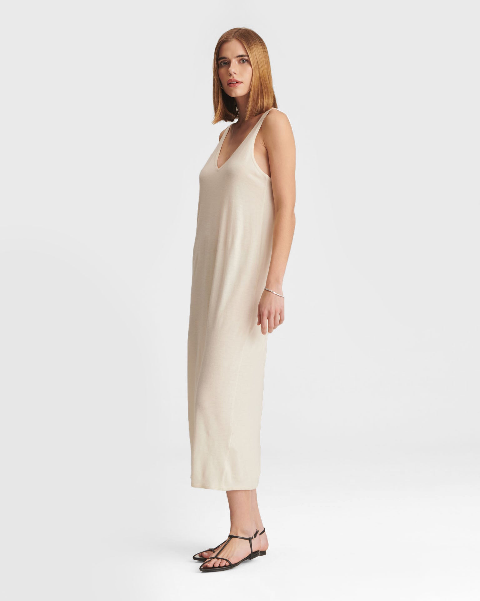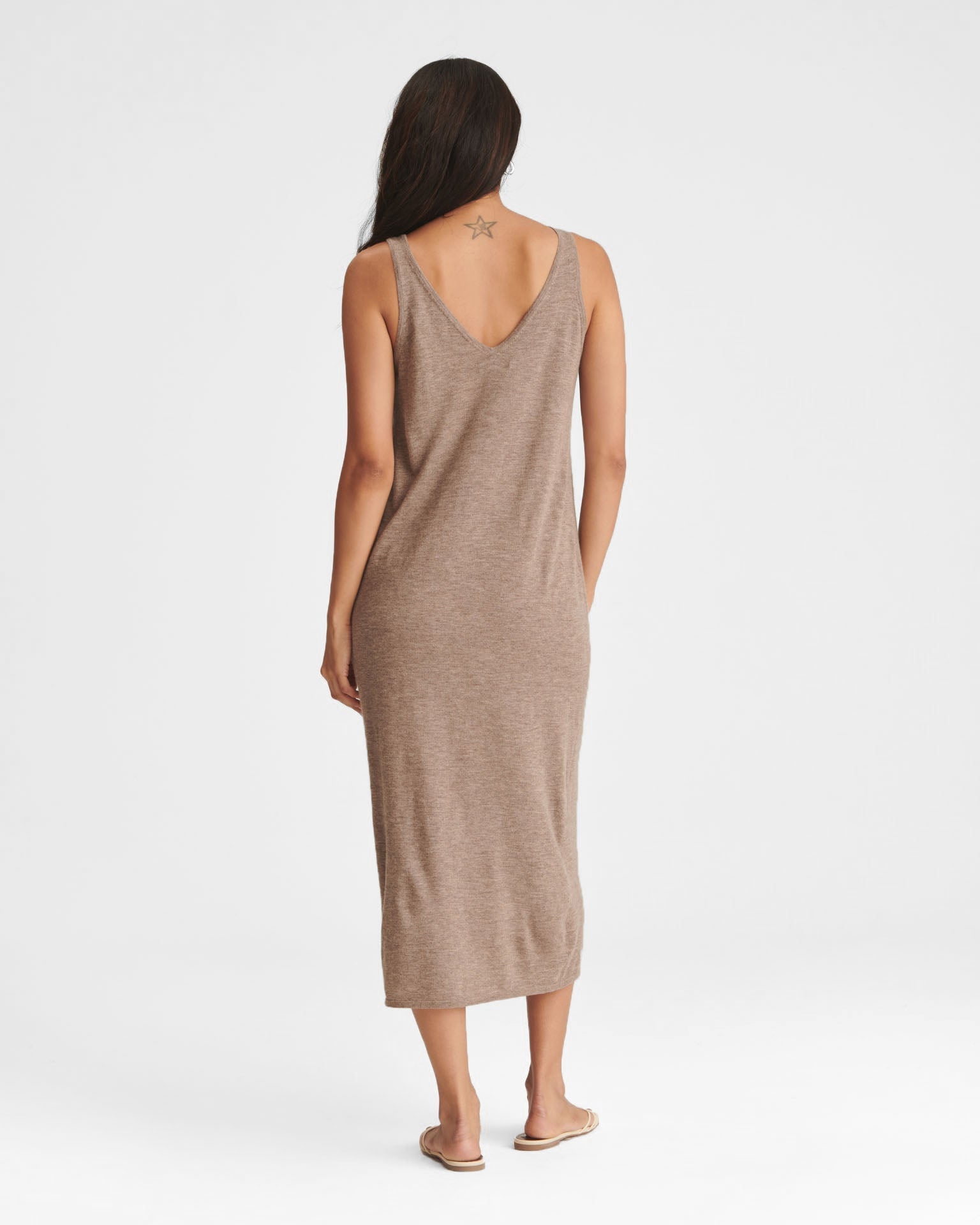 ?Qué elegante! El vestido de tirantes Fancy Cashmere es un vestido midi ligero y lujoso con un corte clásico. Presenta un escote en V pronunciado, bordes ribeteados y un dise?o chic y natural. Confeccionado en Fancy Cashmere: nuestra cachemira premium de 16gg, tejida con maquinaria de vanguardia. Es extrafina, suave como la seda y súper elegante.