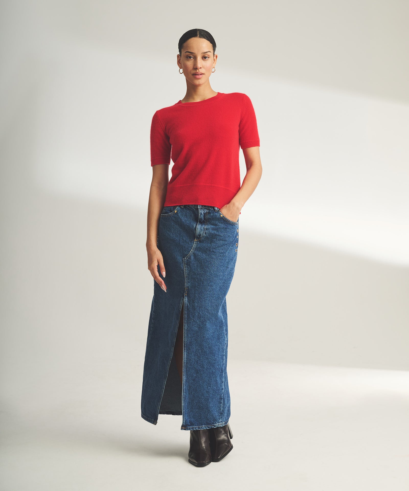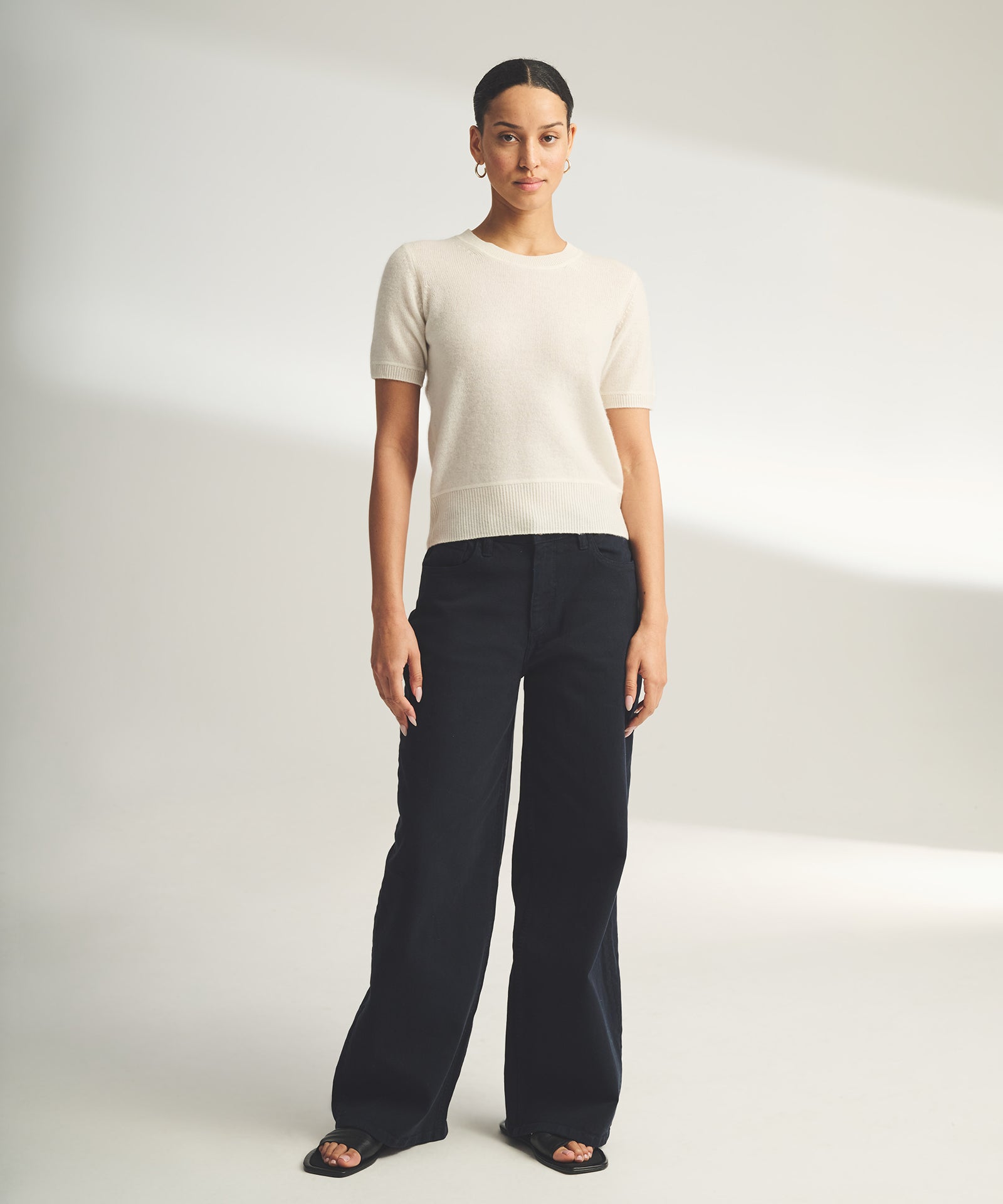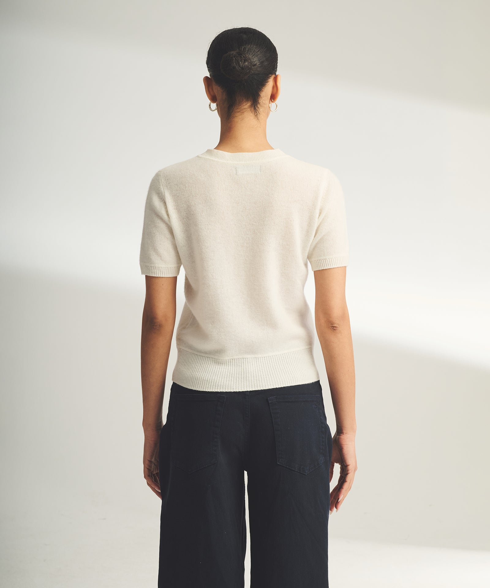 El suéter ligero de cachemira de manga corta es un tejido suave y atemporal con un corte clásico y un largo corto, dise?ado para cubrir la parte superior de la cadera. Presenta cuello redondo, detalles acanalados y cinturilla ancha. Está confeccionado en 100 % cachemira, un tejido ligero, superponible y transpirable. Más artículos similares. Todas las camisetas que necesitas, en un solo lugar: Compra en The Tee Shop.