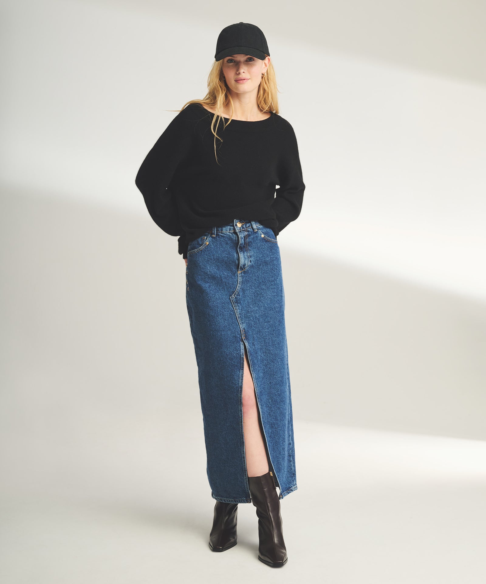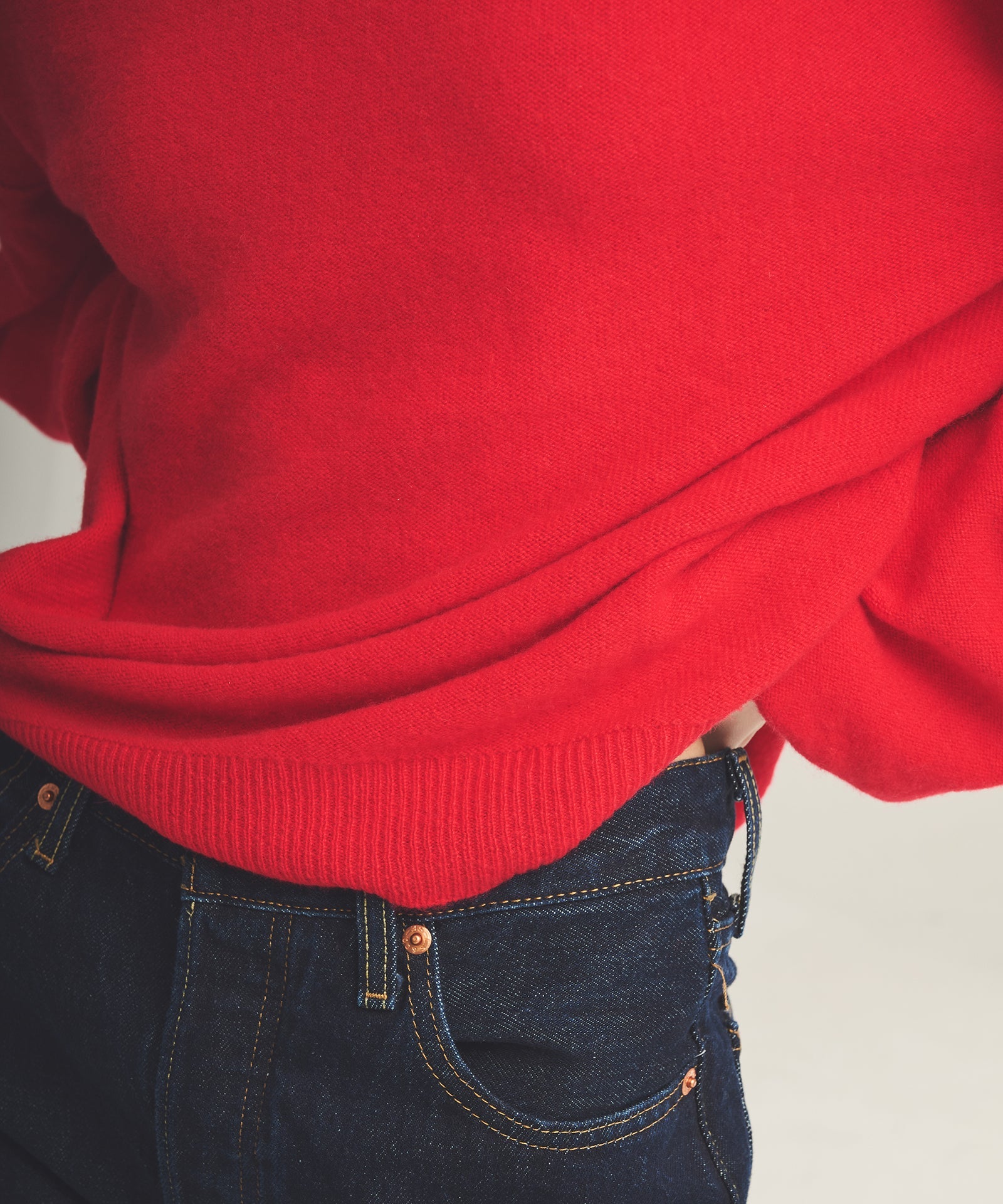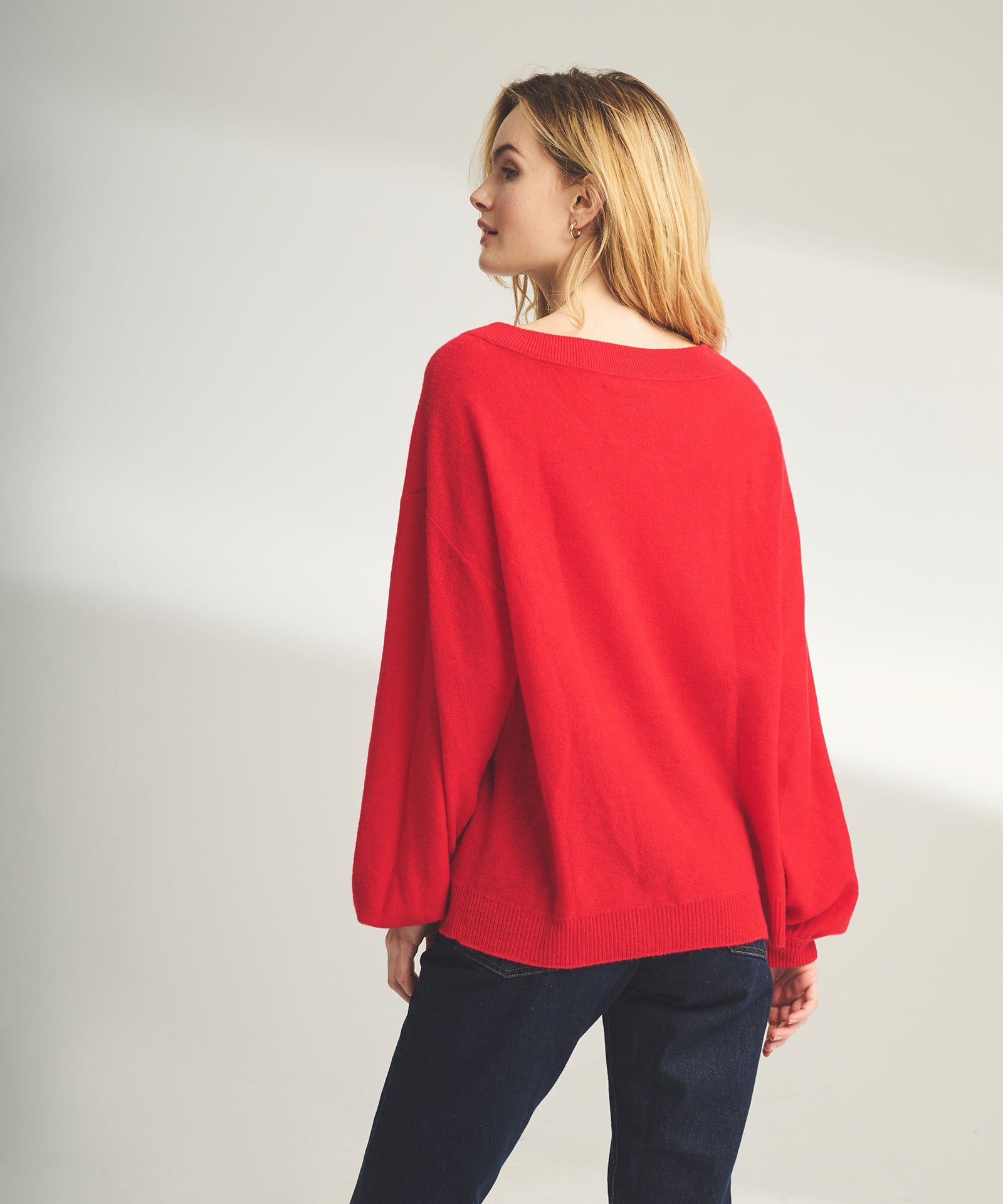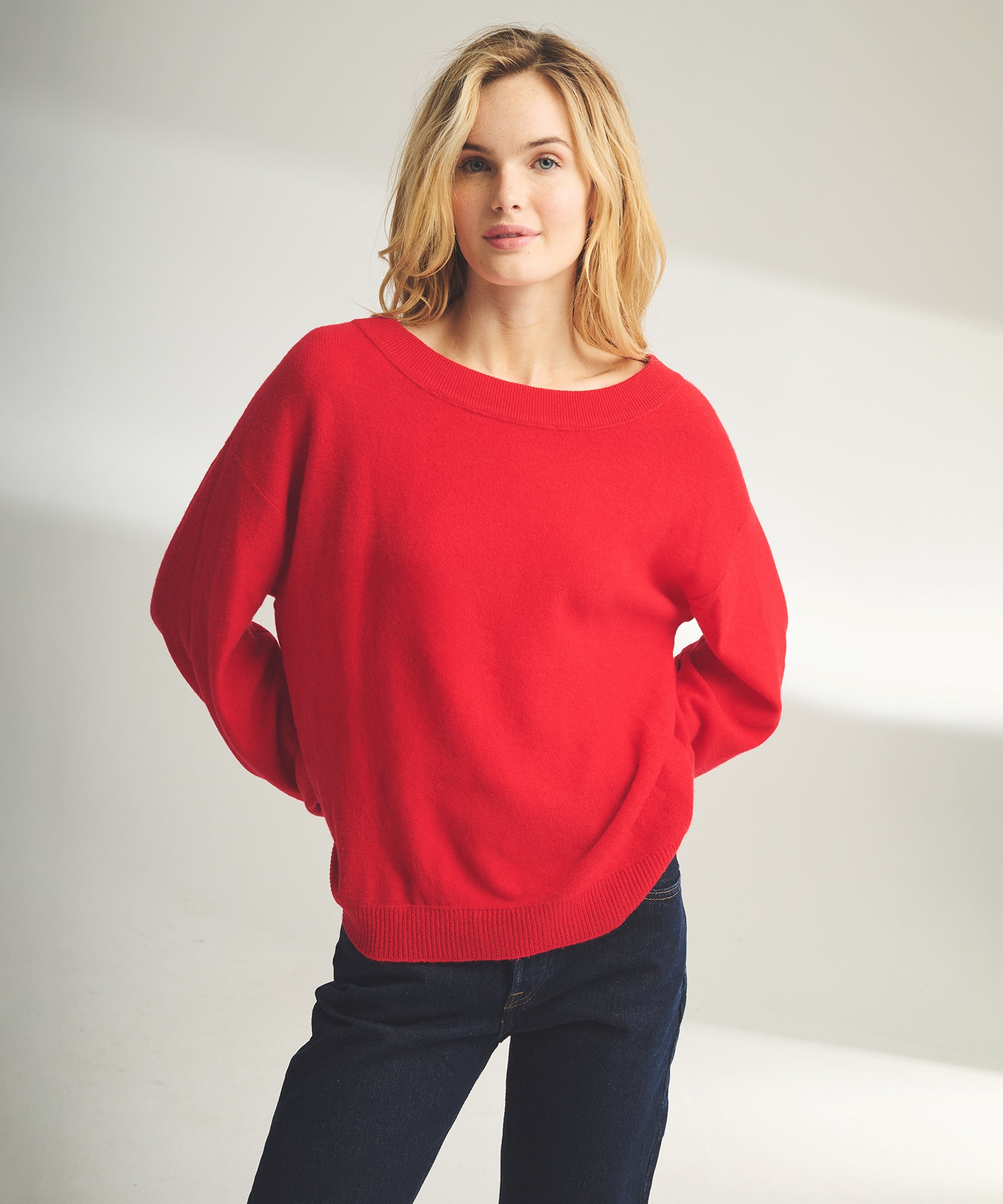 El suéter reversible de cachemira de cuello ancho es un tejido dos en uno con un corte oversize y un largo clásico, dise?ado para quedar a la altura de la cadera. Presenta escote barco, hombros caídos, mangas globo sutiles y una construcción totalmente reversible, para que puedas usarlo con las costuras por dentro o por fuera. Confeccionado en cachemira 100 % ligera y vaporosa.