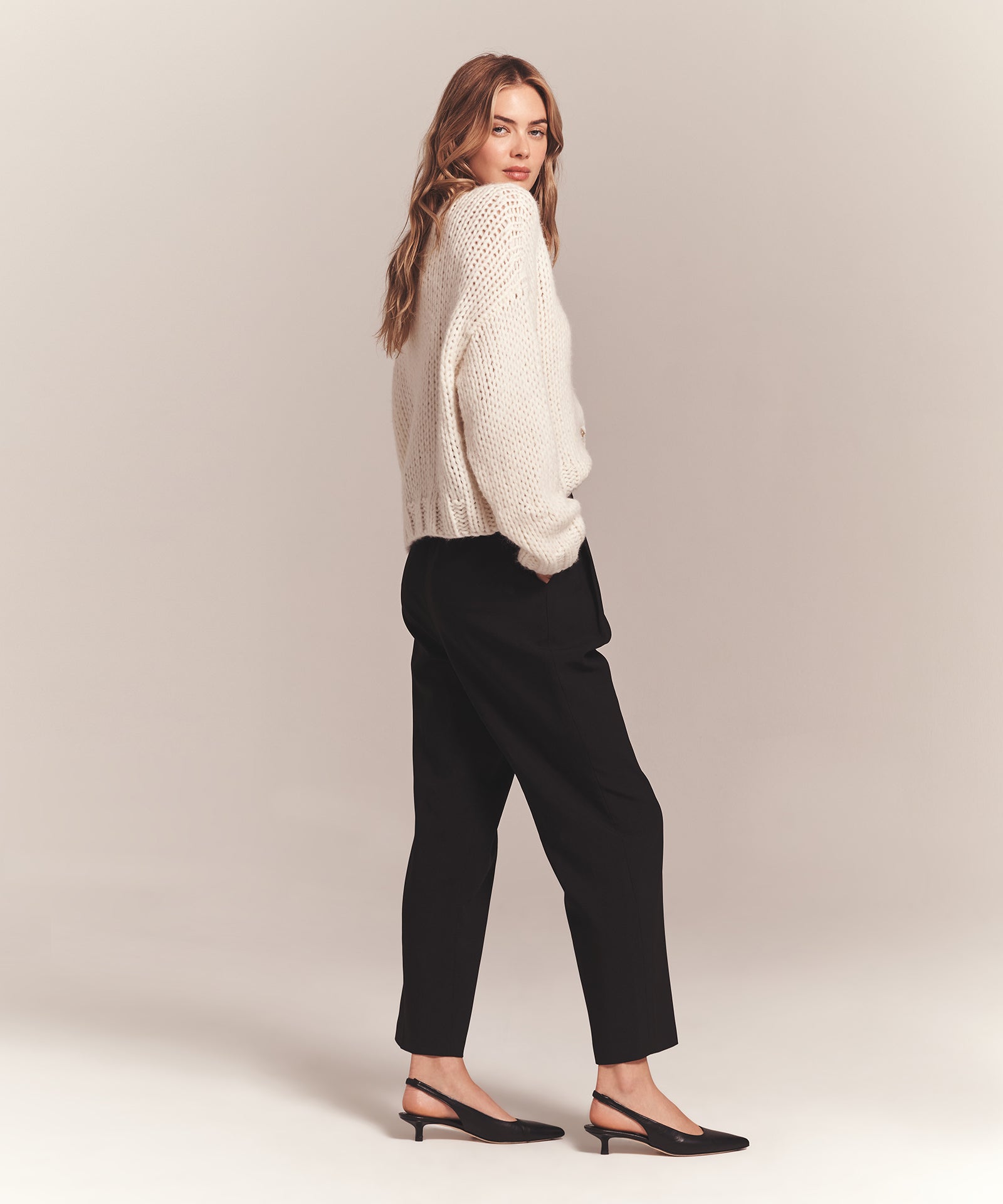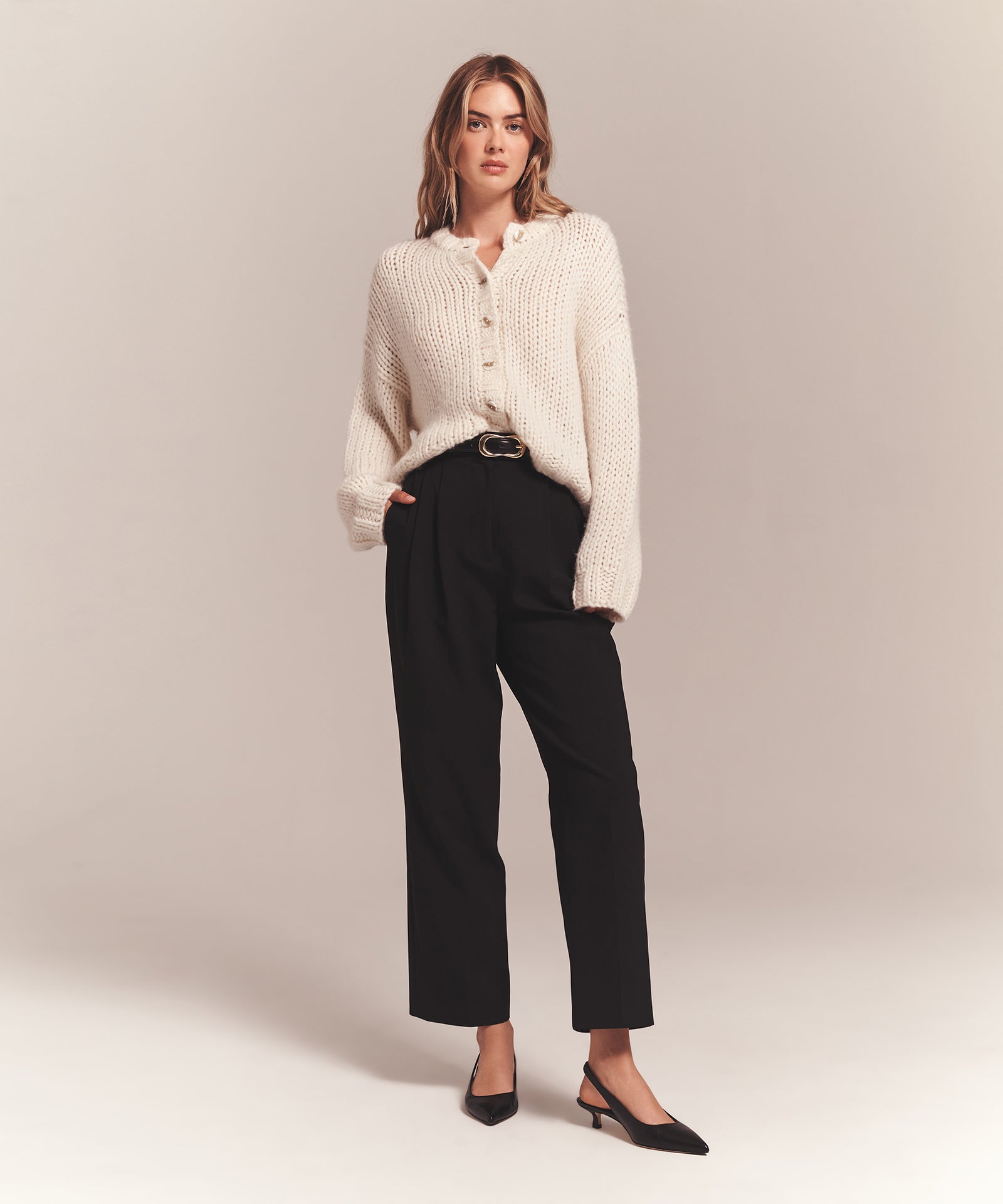 Abrígate con nuestro cárdigan Lofty de alpaca. Esta belleza transpirable atrapa el calor sin abultar, gracias a la magia de la fibra de la lana de alpaca. Más suave que el beso de una alpaca y menos propensa a la formación de bolitas que la lana tradicional. Con un largo clásico y un corte ligeramente oversize, te mantendrás abrigada sin picores. Es el cárdigan perfecto para la temporada de frío.