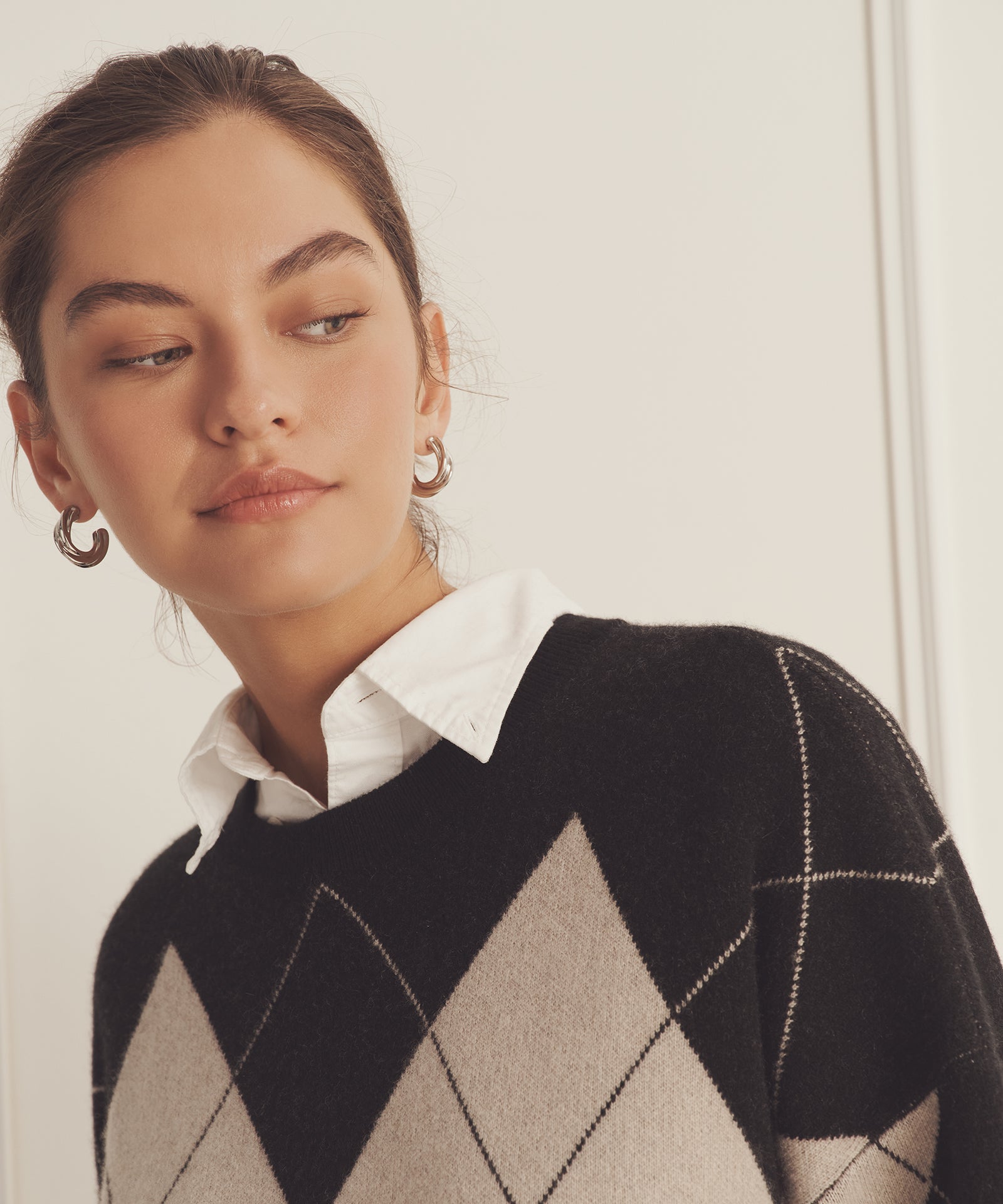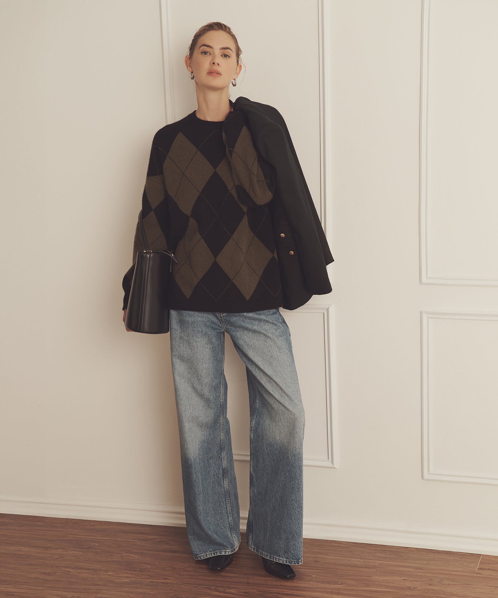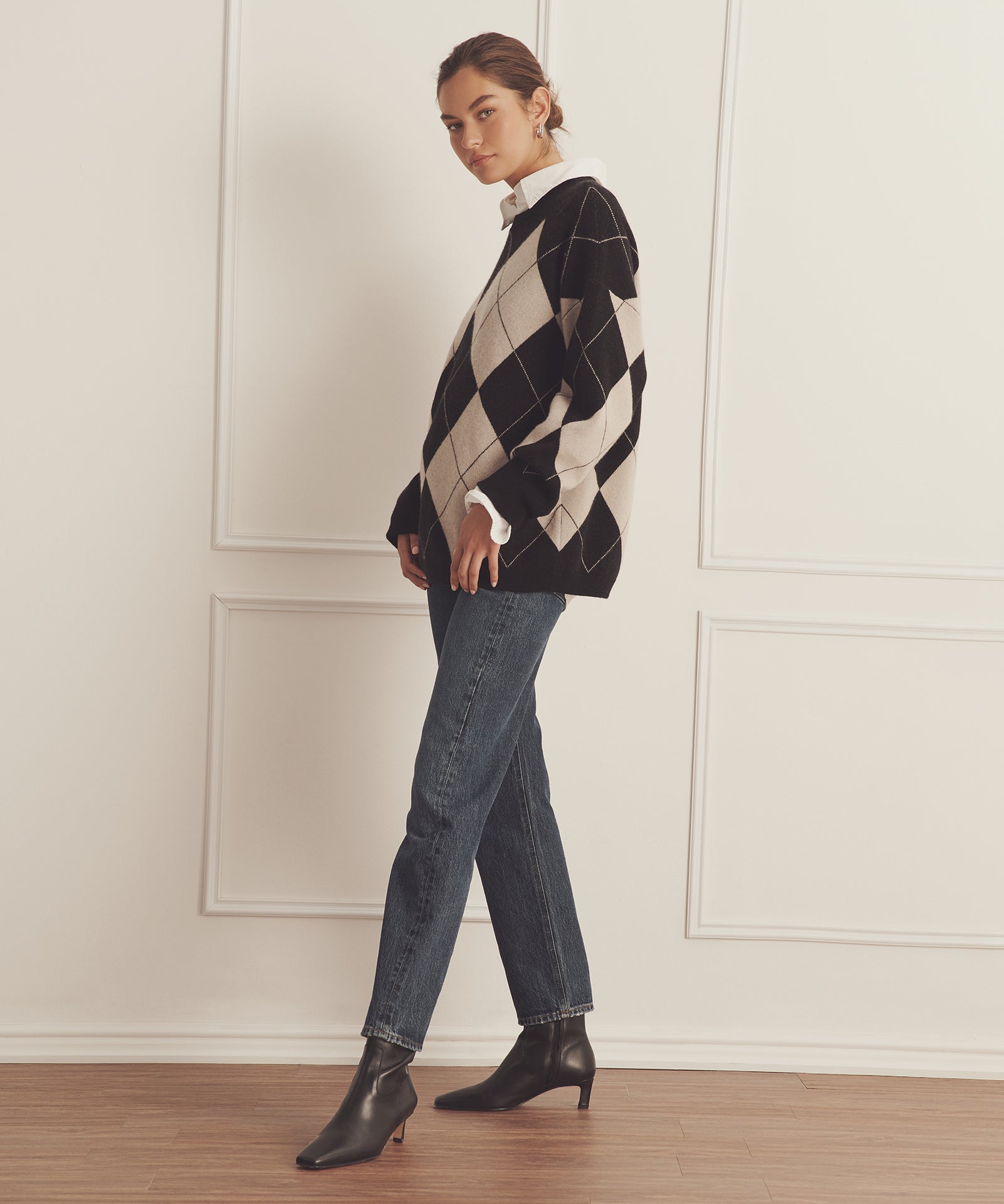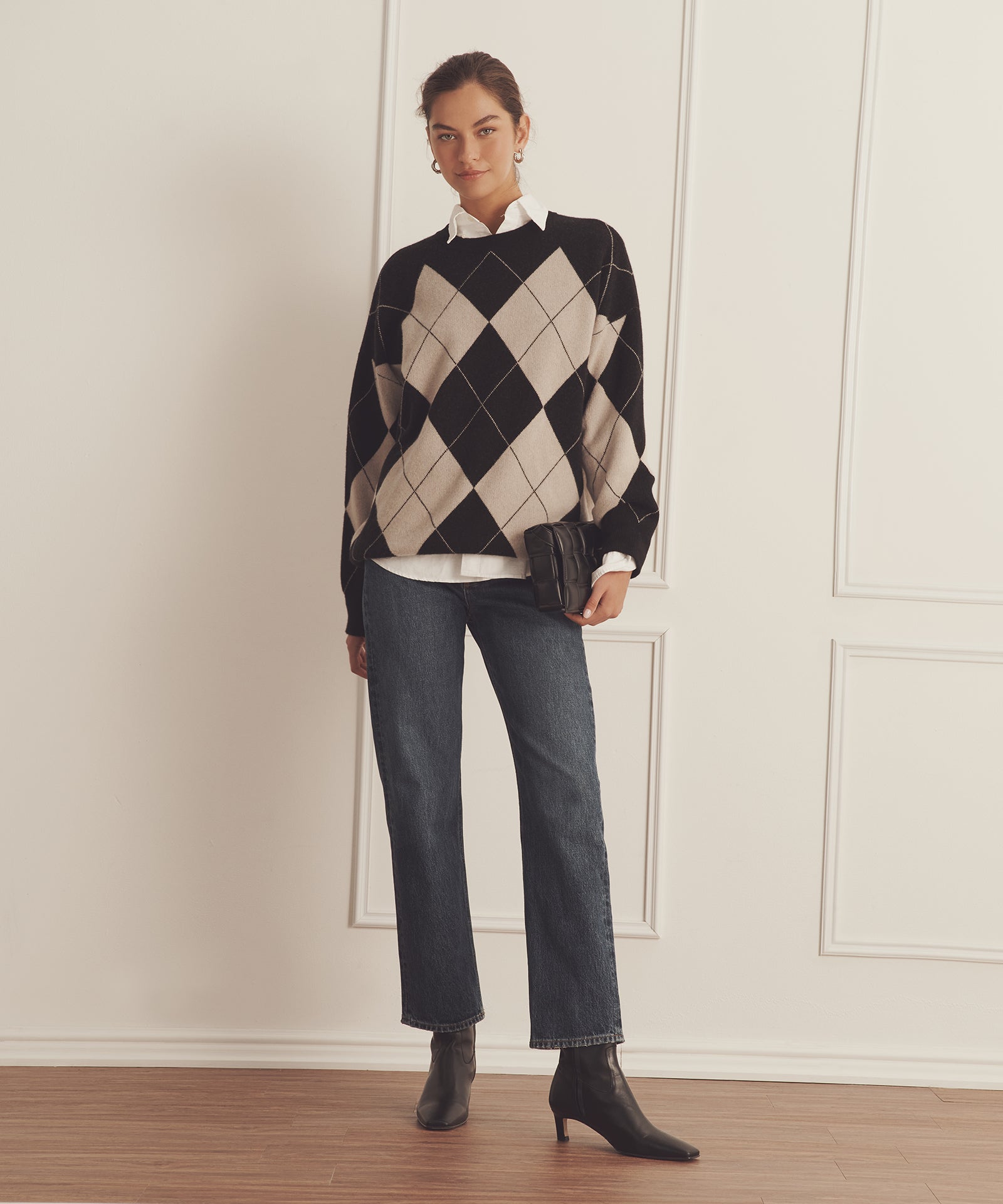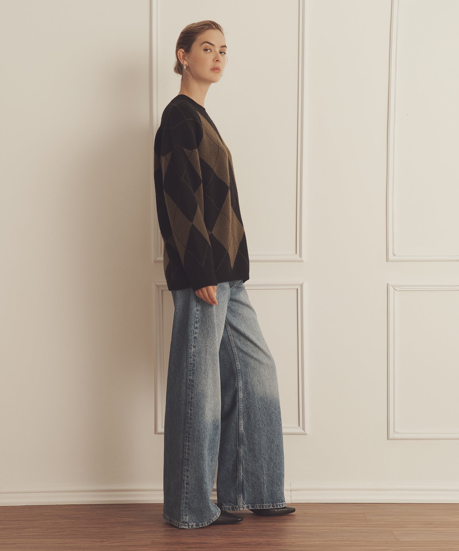 Pásalo. El jersey de cuello redondo Luxe Cashmere Argyle es un tejido de inspiración tradicional con un corte oversize y largo tipo túnica. Presenta cuello redondo, hombros caídos, detalles acanalados y un gran motivo de rombos. Confeccionado en Luxe Cashmere: nuestro cachemir más lujoso y afelpado del mercado.