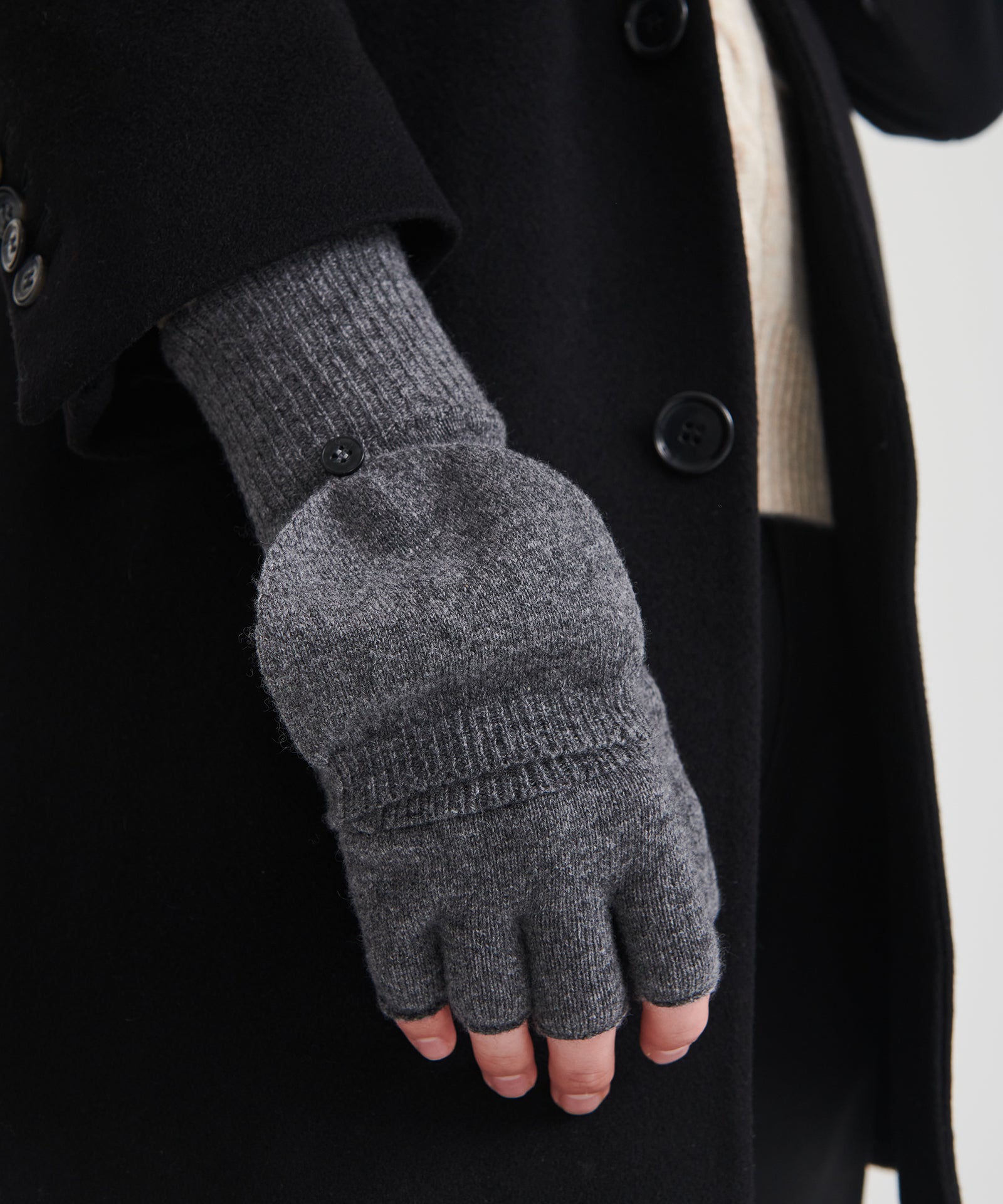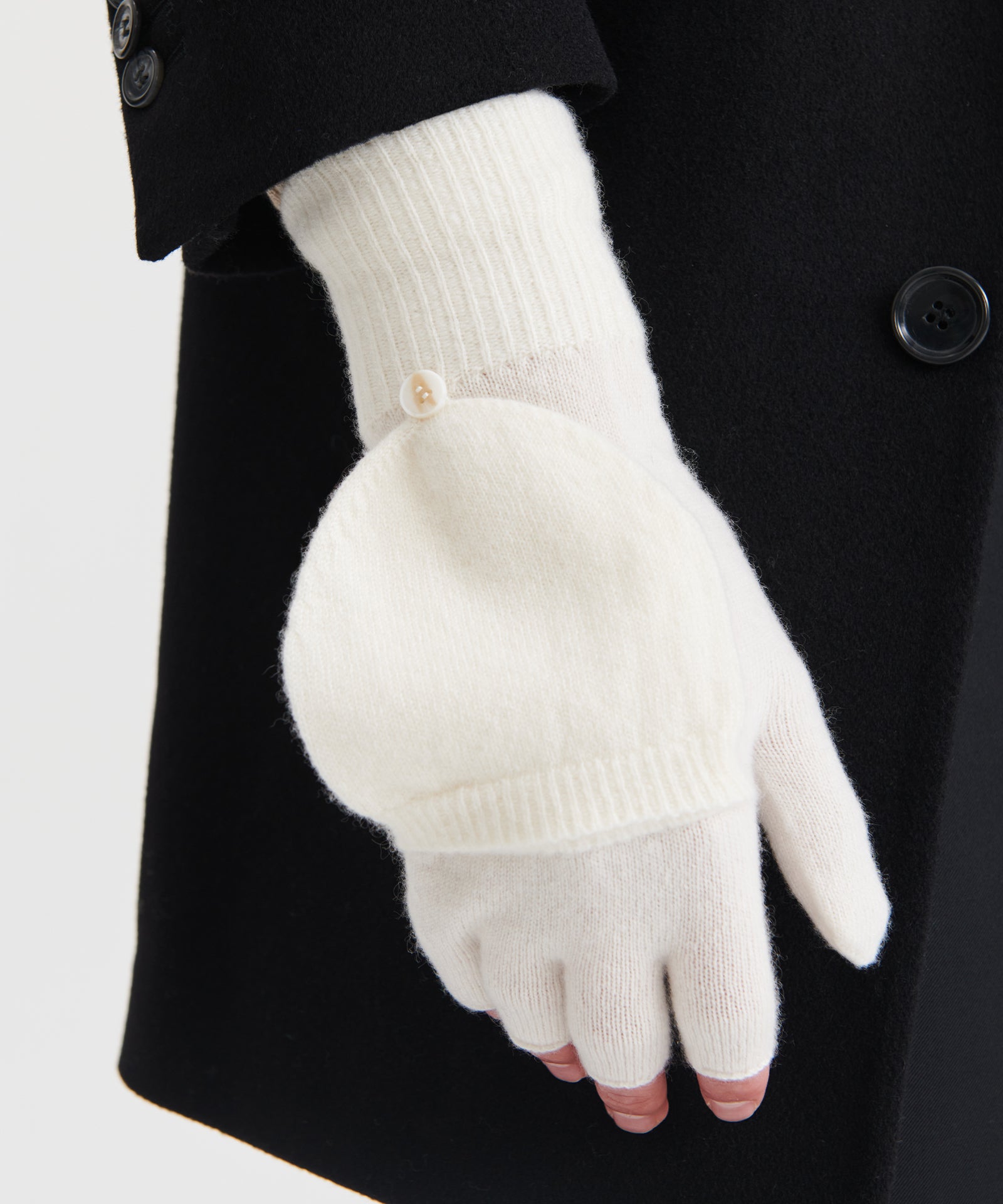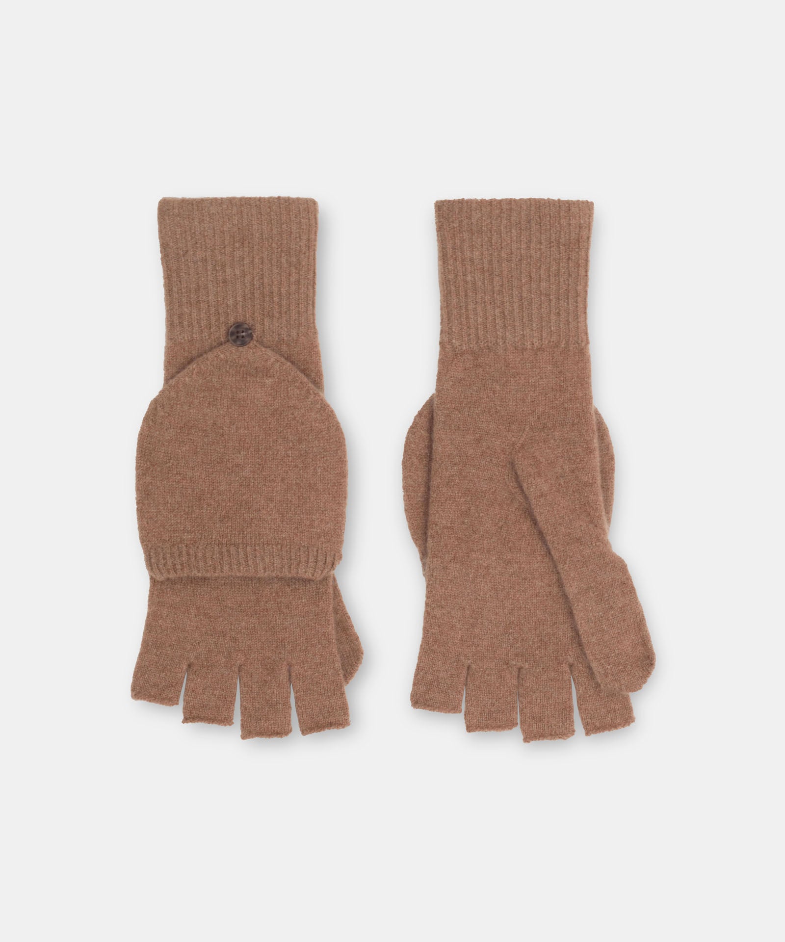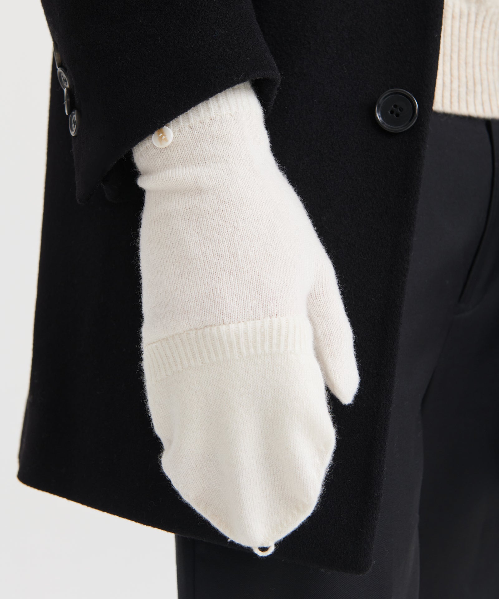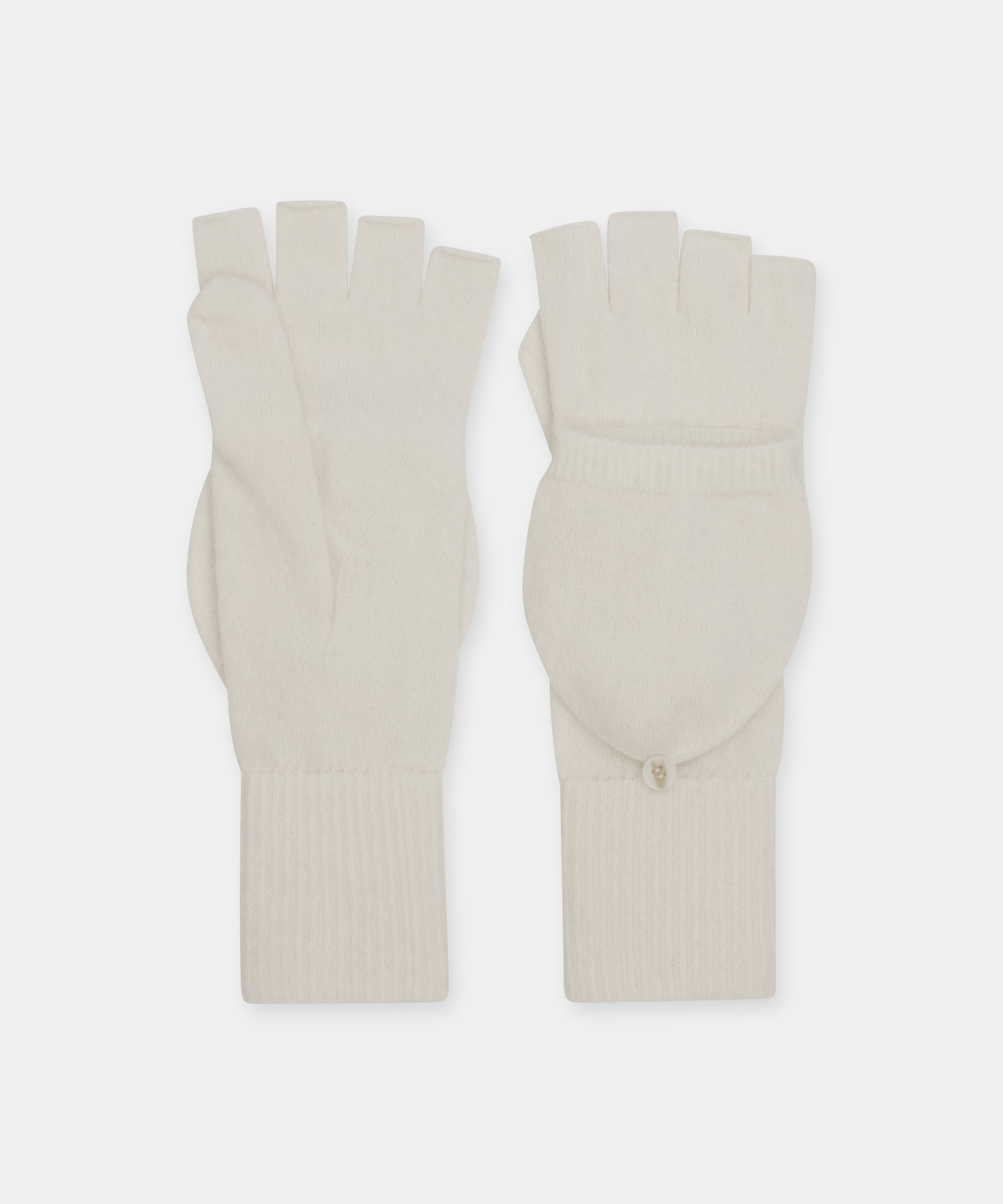 Los guantes de cachemira con cierre a presión son un accesorio de invierno multifuncional con base sin dedos, capucha y pu?os acanalados. Están confeccionados con cachemira 100 % premium y sostenible.