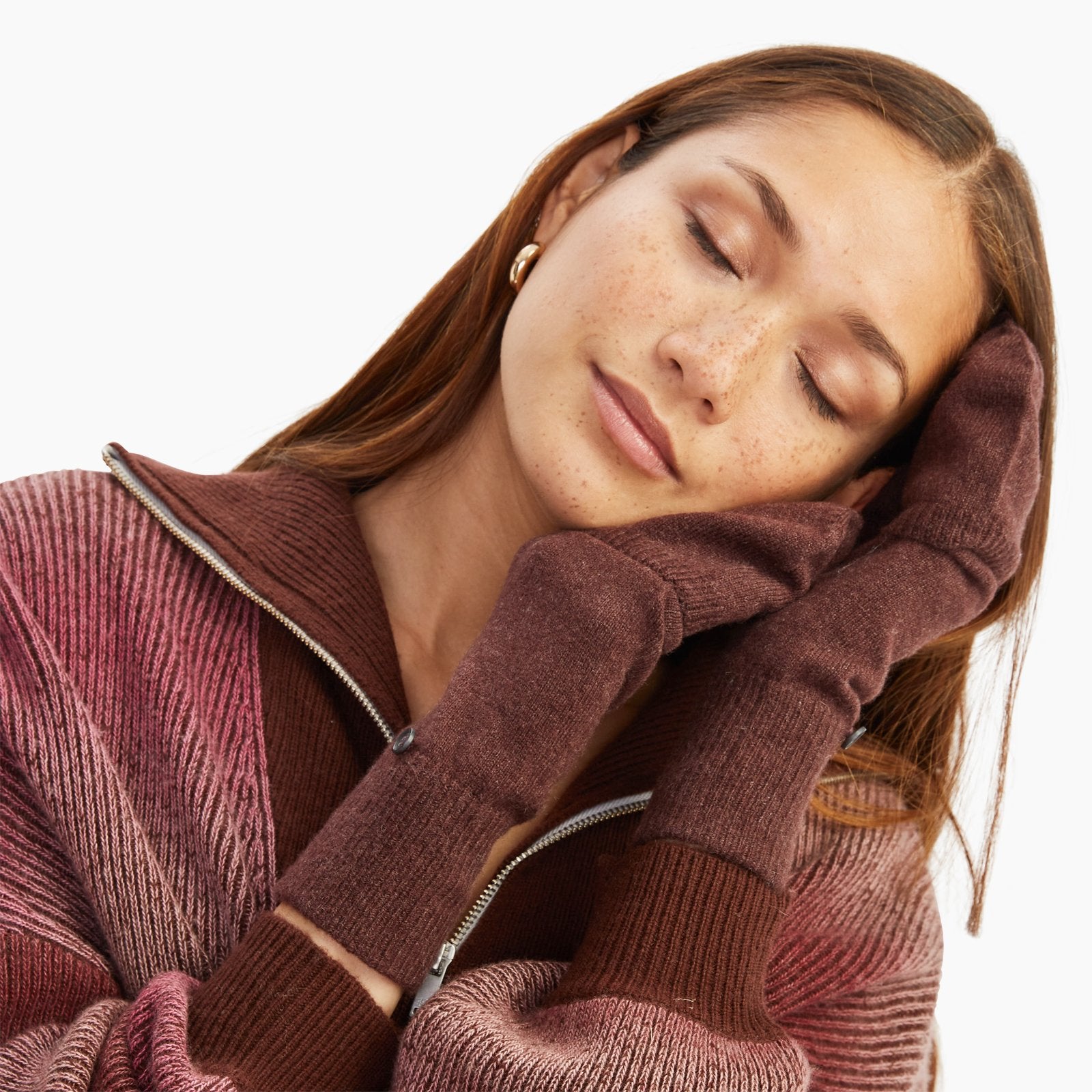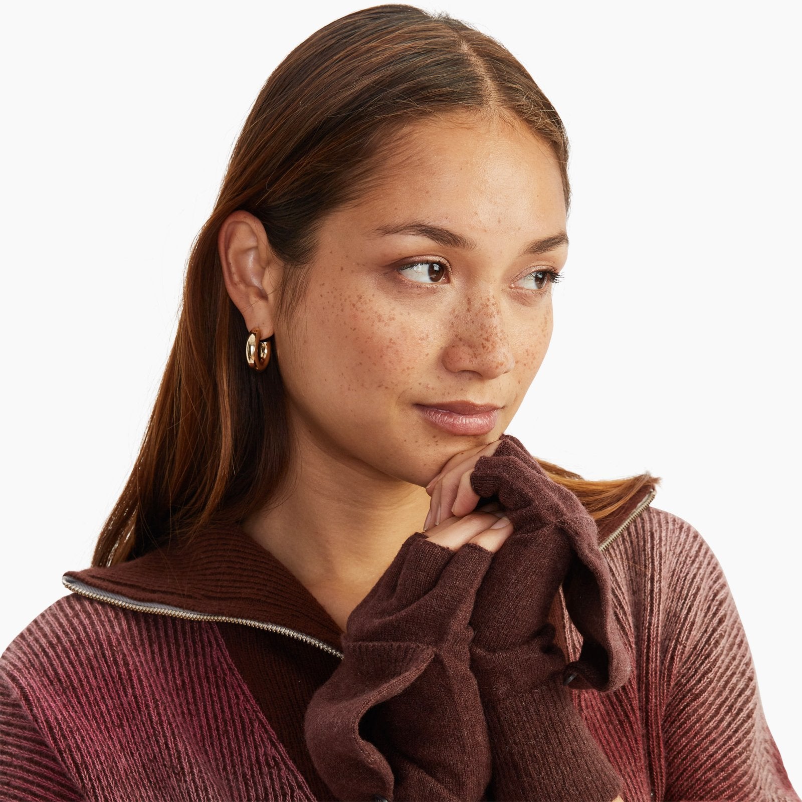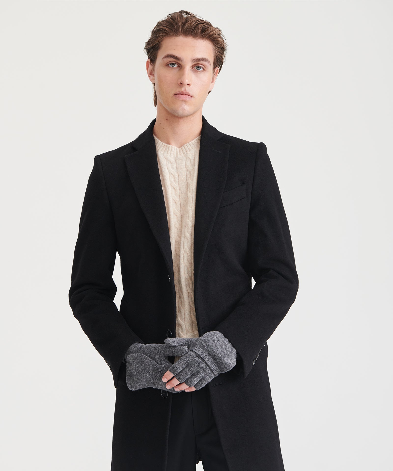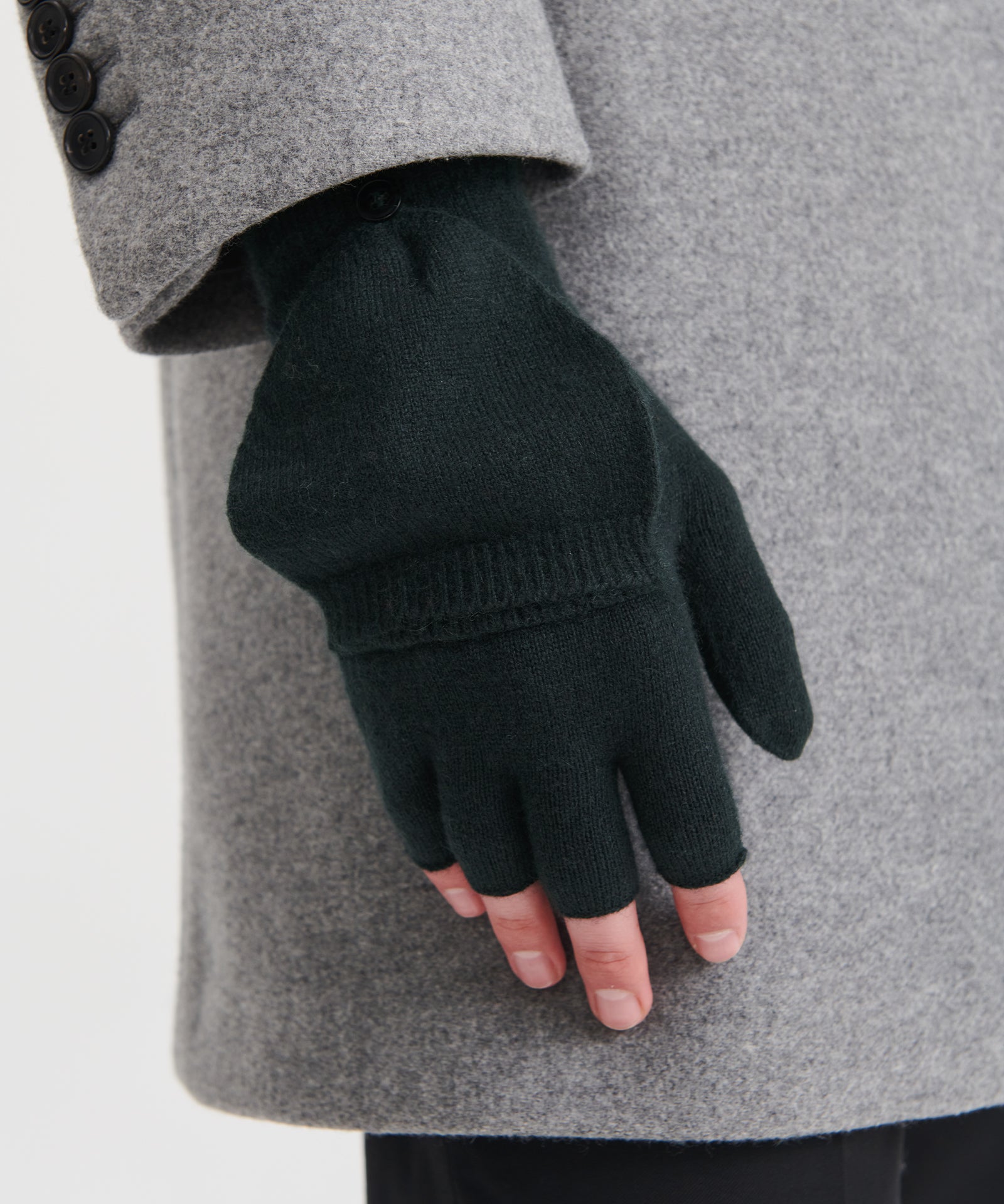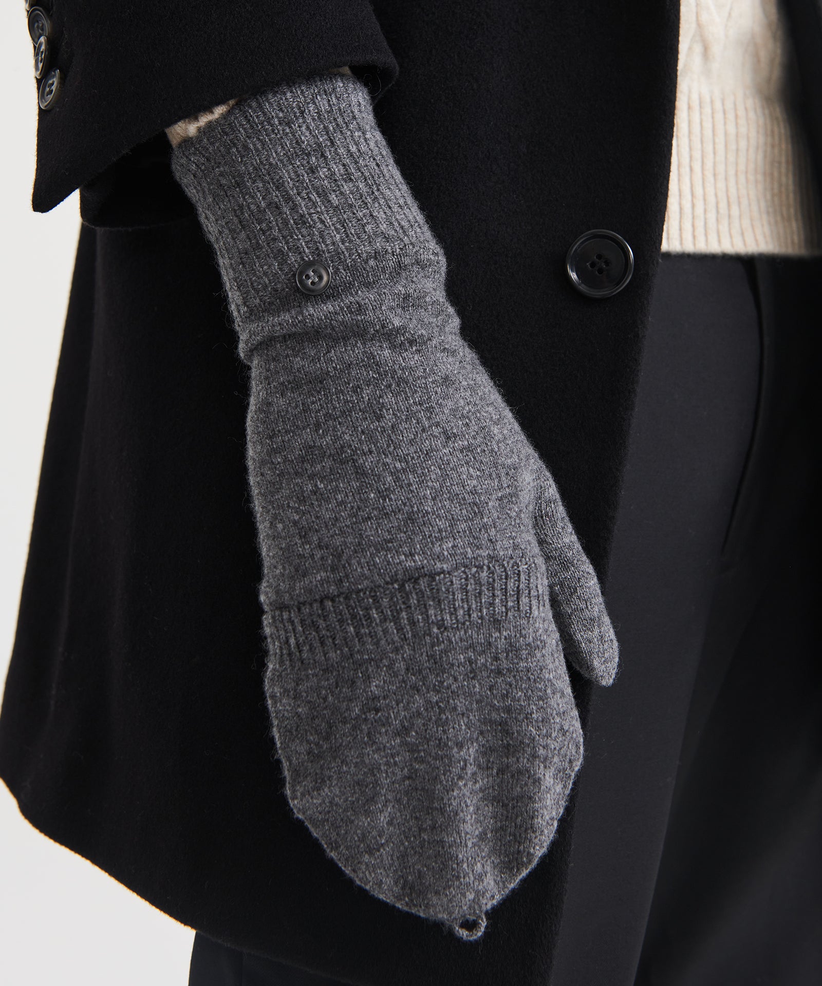Los guantes de cachemira con cierre a presión son un accesorio de invierno multifuncional con base sin dedos, capucha y pu?os acanalados. Están confeccionados con cachemira 100 % premium y sostenible.